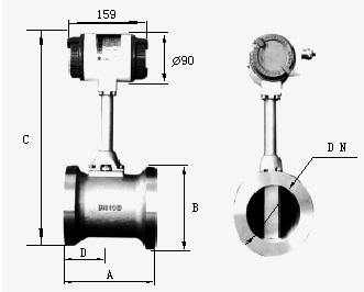 將渦街測量頭插入管道特定位置,通過測量該位置的局部流量,根據(jù)管道截面流速分布關(guān)系,計(jì)算出管道內(nèi)平均流速值。它由轉(zhuǎn)換器、插入桿組件、球閥(根據(jù)需求配 )、安裝短管(ф100)、渦街測量頭等組成。