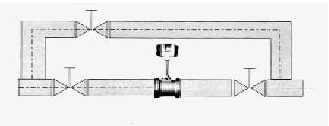 4)如需斷流檢查與清洗傳感器,應(yīng)設(shè)置旁通管道,如下圖所示。