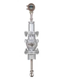 將渦街測量頭插入管道特定位置,通過測量該位置的局部流量,根據管道截面流速分布關系,計算出管道內平均流速值。它由轉換器、插入桿組件、球閥(根據需求配 )、安裝短管(ф100)、渦街測量頭等組成。
